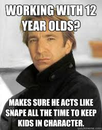 Doch nicht nur die älteren Schauspieler:innen sahen ihn als große Bereicherung für den Cast. Vor allem die Kinder, auch wenn diese ihm das ein oder andere Mal auf den Nerv gegangen sind, wenn sie mal wieder ihren Text vergessen haben, hatten große Achtung vor dem Schauspieler. Statt dies zu äußern, bot er ihnen Unterstützung in Form von Tipps und Ratschlägen an. Diese waren oft sehr nervös in seiner Umgebung. Besonders dann, wenn Rickman schon in seinem schwarzen Outfit steckte und auf dem Set in seiner Rolle als Snape auftrat. Was den Kindern am meisten in Erinnerung geblieben ist, ist, dass Alan Rickman sie gleichwertig behandelte.